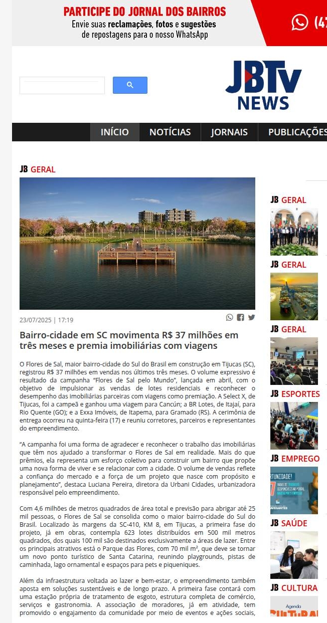 https://jornaldosbairros.tv/noticia/83128/bairrocidade-em-sc-movimenta-r-37-milhoes-em-tres-meses-e-premia-imobiliarias-com-viagens