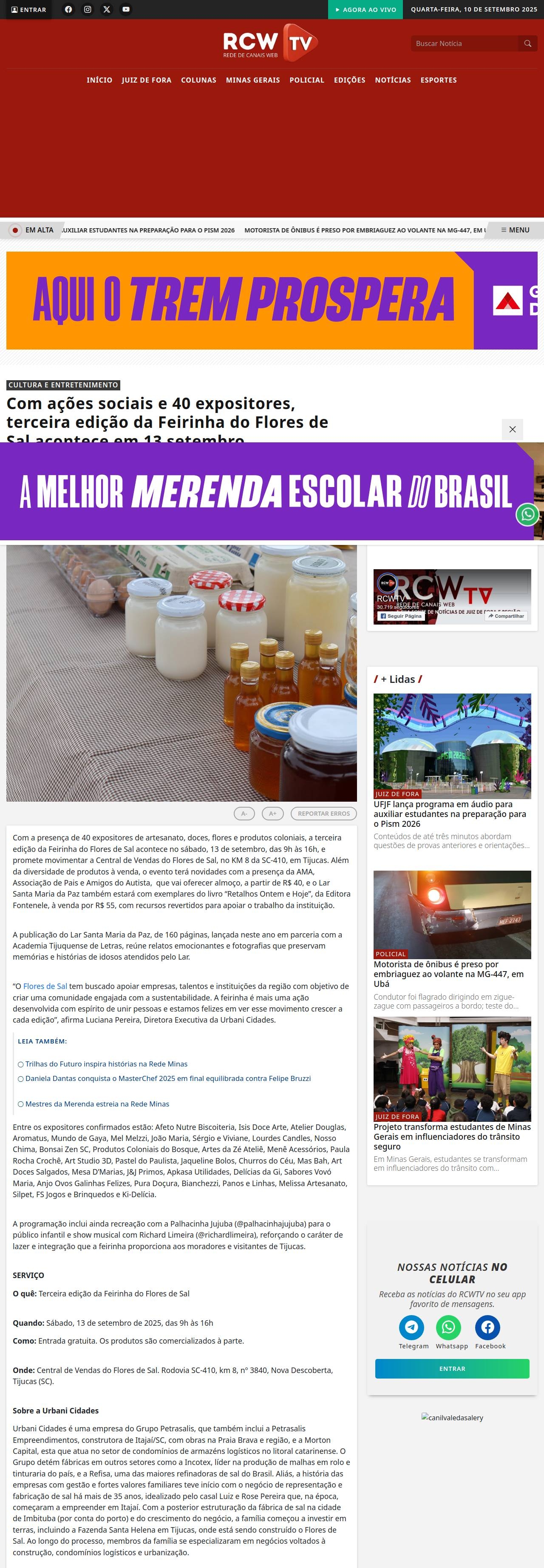 Com ações sociais e 40 expositores, terceira edição da Feirinha do Flores de Sal acontece em 13 setembro - RCWTV