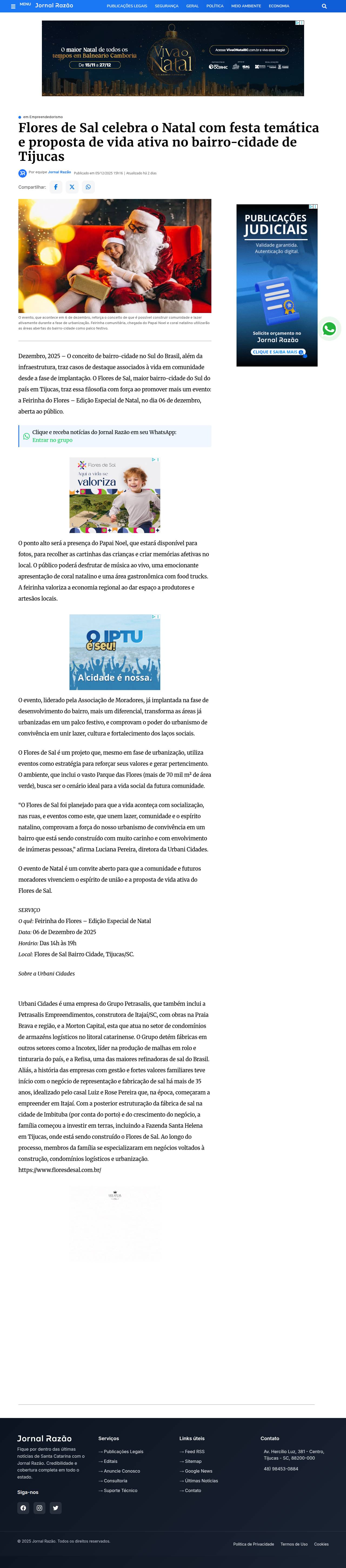Flores de Sal celebra o Natal com festa temática e proposta de vida ativa no bairro-cidade de Tijucas -