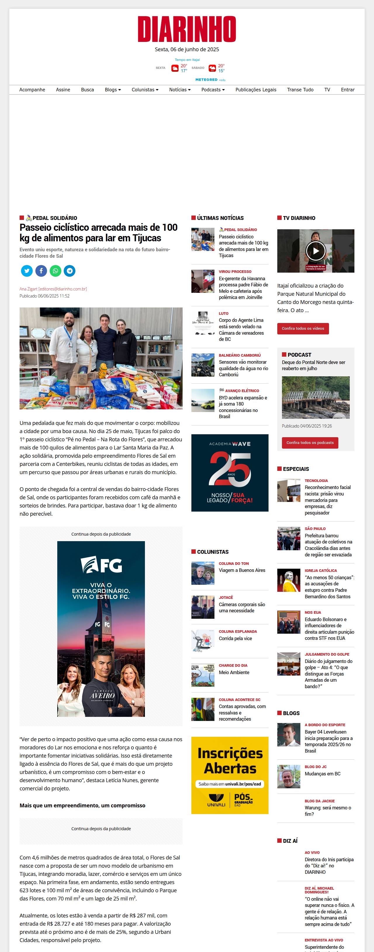 https://diarinho.net/materia/662427/Passeio-ciclistico-arrecada-mais-de-100-kg-de-alimentos-para-lar-em-Tijucas